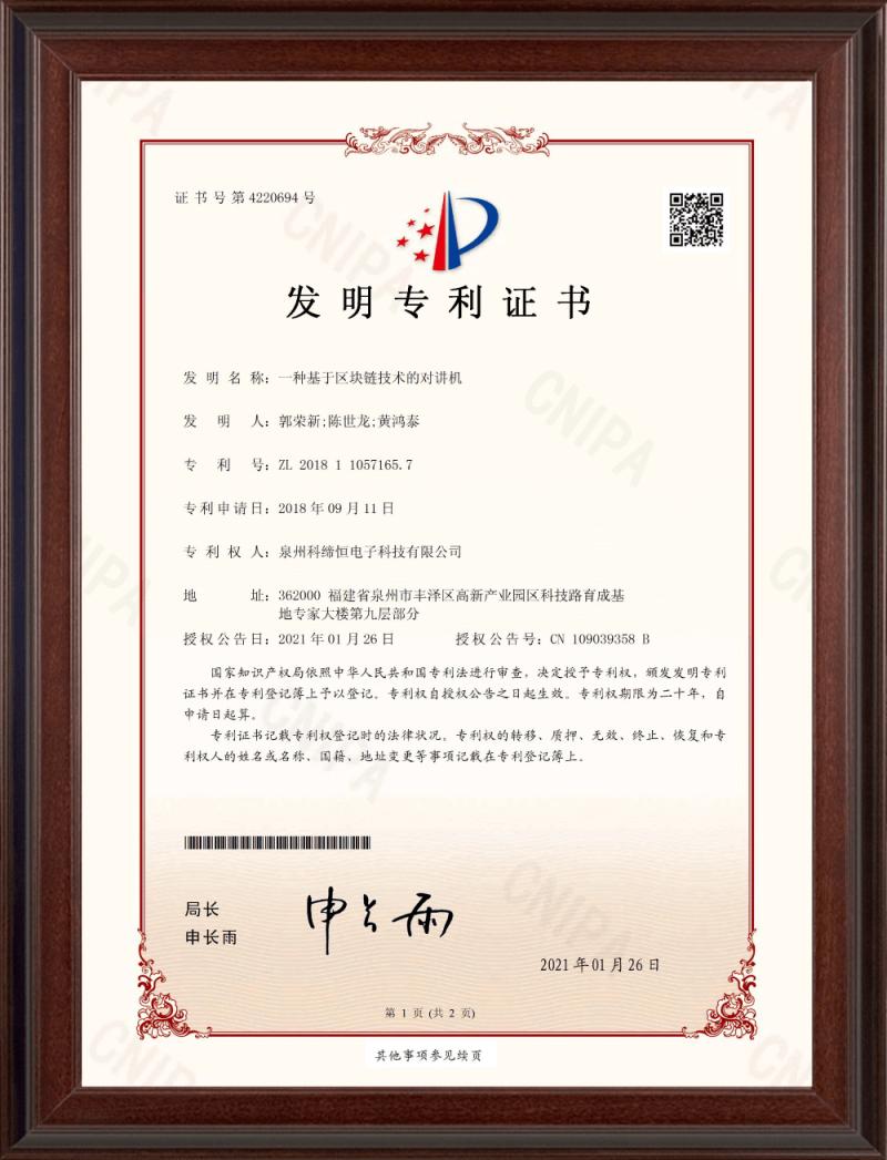 發(fā)明專利(一種基于區(qū)塊鏈技術(shù)的對講機(jī))