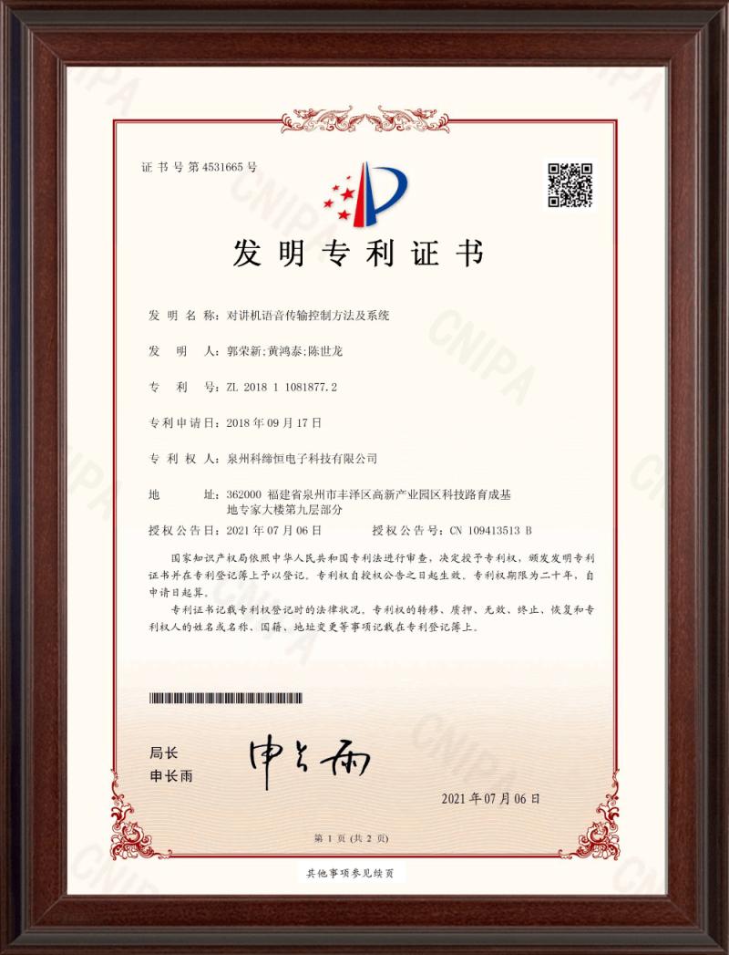 發(fā)明專利(對講機(jī)語音傳輸控制方法及系統(tǒng))